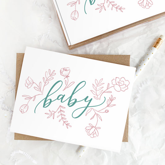Greeting Card: Baby Calligraphy Florals, Gender Neutral